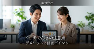 ドコモでんきは、料金だけで決めるより、料金の仕組み・向いている人・注意点を一通り見てから判断する方が納得しやすいです。申込条件や特典の適用条件は変わることもあるため、最後は公式ページで最新情報を確認しておくと安心です。